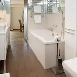 A range of in-room facilities includes a TV set, along with comforts like an ironing set. A highlight of the apartment for guests is the presence of a hairdryer in the bathroom. Furthermore, a bidet, a separate toilet, and a bath is available.